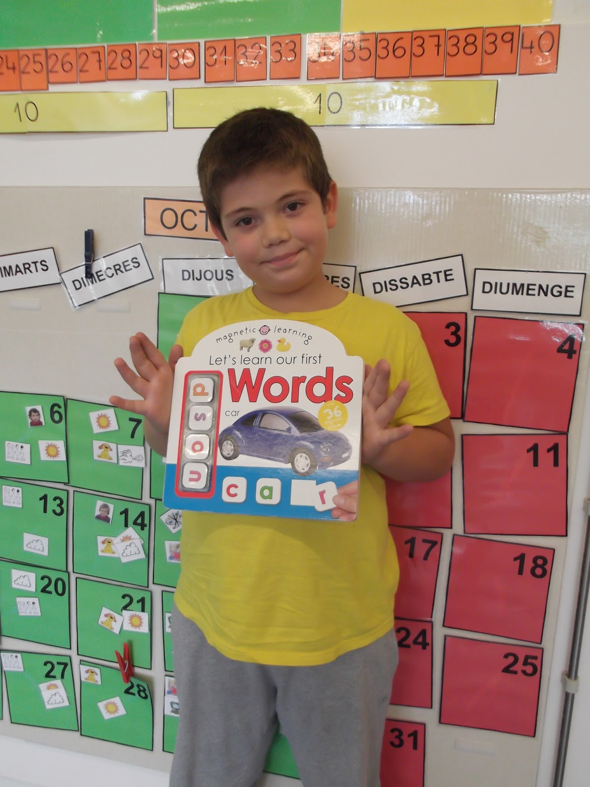 Today Pol has brought a words book to show it to the classroom. We have explained it and we have remembered lots of words. Then, Pol has explained us how to make words with the letters.